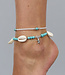 Dieses niedliche Set besteht aus süßen blauen Perlen und Kaurimuscheln. Es besteht aus zwei Knöchelriemen. Ein Armband ist aus perlenfarbenen Perlen mit vier blauen Perlen gefertigt. Das andere Fußkettchen ist aus blauen Perlen mit vier Kaurimuscheln und einem niedlichen silberfarbenen Seesternanhänger gefertigt. Die Fußkettchen sind einfach anzulegen, da sie elastisch sind. Wir empfehlen, den Schmuck nicht beim Duschen etc. zu tragen, damit der Schmuck seinen optimalen Glanz behält.
