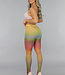Diese farbigen Strumpfhosen sind komplett aus einem dehnbaren Stoff gefertigt. Die Strumpfhose hat eine hohe Taille und ist mit einem schönen Regenbogenmuster bedruckt. Die Strumpfhosen sind 20 Denier Strumpfhosen. Die Strumpfhose kann von Größe S bis Größe XL getragen werden.