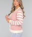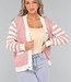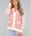 Diese Strickjacke hat lange Ärmel und ist herrlich weich. Sie hat einen V-Ausschnitt und vorne einen Knopfverschluss, der aus fünf großen Knöpfen besteht. Außerdem hat diese Strickjacke ein Streifenmuster an den Ärmeln.