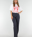 Diese Hose ist aus einem robusten und superelastischen Stoff gefertigt. Sie hat einen Reißverschluss mit einer Knopfleiste. Die Hose hat fünf Schlaufen an der Taille, sodass Sie Ihren Lieblingsgürtel dazu tragen können. Über das gesamte Bein verläuft eine Paspel bis zum unteren Ende der Hose.
