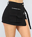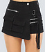 Ein schwarzer Cargo-Skort ist eine trendige Hose, die perfekt für einen lässigen und coolen Look ist. Der Skort verfügt über mehrere Taschen, Reißverschlüsse und ein Schnallendetail, das für einen coolen und funktionalen Look sorgt.
