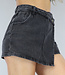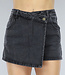 Dieser Skort hat eine anthrazitfarbene Denimfarbe und ist aus hochwertiger Baumwolle gefertigt. Der Stoff ist strapazierfähig und atmungsaktiv und somit perfekt für die Frühlings- und Sommermonate geeignet. Die Überlappung verleiht dem Design eine lustige und einzigartige Note, während der schräge Verschluss für eine schlanke Passform sorgt. Der Skort ist mit einem Reißverschluss und einem Knopf zu schließen.