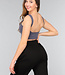 Dieses Oberteil ist aus einem festen, dehnbaren Sportstoff gefertigt, der Kompression bietet. Das Top hat ein elastisches Band mit Pads, die das Tragen eines BHs überflüssig machen. Die Rückseite des Tops ist offen und verleiht einen einzigartigen Look.