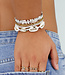Dieses Armbandset besteht aus mehreren Armbändern mit einer Mischung aus kleinen Perlen, Kaurimuscheln und goldfarbenen Seesternen. Die unterschiedlichen Texturen und Farben sorgen für einen spielerischen Effekt, während die neutralen Farbtöne leicht zu kombinieren sind. Die Armbänder sitzen gut und fühlen sich dank des elastischen Fadens und des Kordelverschlusses leicht am Handgelenk an.