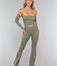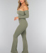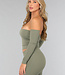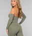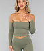Armeegrünes Off Shoulder Top mit langen Ärmeln