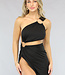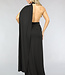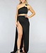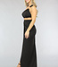 Dieses tolle Partykleid ist perfekt für die Feiertage! Das Kleid ist aus einem luftigen Stretch-Stoff gefertigt. Der Rock fällt sehr lang und hat einen hohen Schlitz. Das Kleid fällt an mehreren Stellen in Falten. Das Oberteil des Kleides hat ein asymmetrisches Design mit einem Ein-Schulter-Modell, das mit goldenen Ringen versehen ist. Auf der Rückseite ist das Kleid mit einem Schleifenlook versehen.
