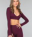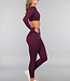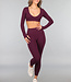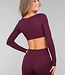 Aubergine Langarm-Stretch-Sport-Top