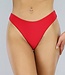 Ein einfaches rotes, hoch geschnittenes Bikini-Unterteil ist eine zeitlose Wahl für Damen, die einen minimalistischen, aber dennoch stilvollen Look am Strand oder am Pool suchen. Diese Art von Bikiniunterteil sitzt hoch auf den Hüften und lässt die Beine länger und die Taille schmaler erscheinen. Außerdem bedeckt das Bikini-Unterteil den Rücken gut, während es an den Seiten noch ein wenig Haut zeigt.