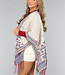 Diese Strickjacke ist aus einem weichen Material gefertigt, das sie wunderbar warm macht. Die Strickjacke hat Fledermausärmel mit Knöpfen und Fransen an der Unterseite. Außerdem hat diese Strickjacke einen bunten Aztekenprint. Diese Strickjacke ist perfekt für die kälteren Tage!