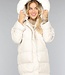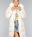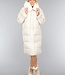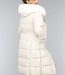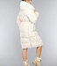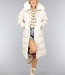 Dieser Wintermantel hat ein langes, übergroßes Design und hat lange Ärmel mit einem Band am Ende mit Druckknöpfen. Diese Bänder sorgen dafür, dass der Wind nicht durch die Ärmel dringen kann. Die Vorderseite hat einen Reißverschluss mit einer Klappe darüber. Diese Klappe wird mit Druckknöpfen geschlossen und verhindert ebenfalls das Eindringen von Wind. Sie hat eine Kapuze mit schwarzem Kunstpelzkragen, dessen Pelzkragen mit Knöpfen abnehmbar ist. Die Jacke hat zwei schräge Taschen und in der Taille befindet sich auf jeder Seite ein elastischer Kordelzug, den man bei Bedarf enger ziehen kann, um mehr Taille zu schaffen.