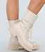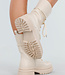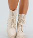 Diese beigen Schnürstiefel haben eine klobige Sohle und sind halbhoch. Die Stiefel sind aus glattem Kunstleder gefertigt und werden mit einem Reißverschluss an der Innenseite geschlossen, sodass du sie leicht anziehen kannst. Die runde Spitze und die grobe Sohle verleihen den Stiefeln einen coolen Look, während die neutrale beige Farbe sie leicht kombinierbar macht.