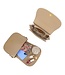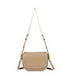 Diese beigefarbene Umhängetasche hat eine kompakte, rechteckige Form mit abgerundeten Ecken und einer glatt verarbeiteten Vorderseite. Die Tasche ist ca. 22 cm breit, 17 cm hoch und 8 cm tief und wiegt 0,78 kg. Der breite weiße Canvas-Schulterriemen ist verstellbar und abnehmbar und wird mit goldfarbenen Karabinerhaken und Schnallen befestigt. Die gesteppten Details auf der Vorderseite verleihen dem Design zusätzliche Struktur und Stil. Dank ihres praktischen Formats und ihrer robusten Verarbeitung eignet sich die Tasche für den täglichen Gebrauch, sowohl als Crossbody-Tasche als auch über der Schulter.