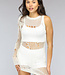 Dieses Kleid ist gehäkelt und durchsichtig. Das Kleid ist mit Löchern durchzogen, was ihm einen coolen Look verleiht. Außerdem hat es einen Ärmel und einen Rock, der asymmetrisch nach unten verläuft, wie süß! Dieses Kleid ist perfekt für ein Festival.
