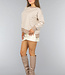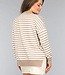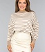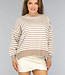 Dieser Pullover ist aus einem schönen weichen Stoff gefertigt. Der Pullover hat einen Rundhalsausschnitt und lange Ärmel. Außerdem hat er einen Schlitz an den Seiten und ein Streifenmuster. Der Pullover hat außerdem Rippstrickbündchen am Halsausschnitt, unten und an den Ärmelenden.