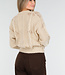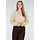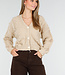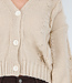 Diese beige Strickjacke ist aus einem grob gestrickten Stoff mit durchbrochenen Details gefertigt. Das Modell hat einen tiefen V-Ausschnitt und wird vorne mit drei Knöpfen geschlossen. Die langen Ärmel enden in breiten Rippstrickbündchen, die für zusätzliche Struktur sorgen. Die Strickjacke hat eine lockere, bequeme Passform und reicht bis zur Hüfte. Der Strick hat ein dezentes Reliefmuster auf der Vorder- und Rückseite.