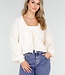 Diese beige Strickjacke hat eine grobe Strickstruktur und einen auffälligen Krawattenverschluss auf der Vorderseite. Das Modell hat einen niedrigen Schulteransatz, Ballonärmel und eine kurze Passform, die locker auf der Taille fällt. Hergestellt aus einem weichen, bequemen Strickstoff, der angenehm zu tragen ist.
