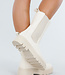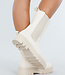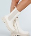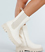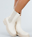 Diese beigen Chelsea-Stiefel haben ein gewebtes Muster und eine klobige Sohle. Die elastischen Einsätze an den Seiten sorgen für einen bequemen Sitz und erleichtern das An- und Ausziehen der Schuhe. Die Stiefel haben eine knöchelhohe Form und eine robuste Sohle mit Profil für zusätzlichen Halt. Die Ferse ist mit einer Schlaufe versehen, die das Anziehen erleichtert.