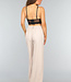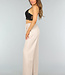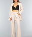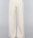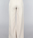 Diese Hose hat einen weiten Beinschnitt und eine hohe Taille. Außerdem hat sie einen elastischen Bund, einen Knopfverschluss mit Reißverschluss, drei Gürtelschlaufen und zwei Seitentaschen. Diese Hose enthält keinen Stretchanteil.