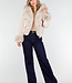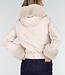 Dieser beigefarbene kurze Wintermantel ist aus robustem Material gefertigt und hat einen abnehmbaren Kunstfellkragen und -manschetten. Der Mantel hat eine breite Kapuze, zwei Pattentaschen mit Druckknopfverschluss und einen Reißverschluss mit Windschutzleiste vorne. Der Saum ist für eine gute Passform elastisch eingenäht. Die Innenseite ist vollständig gefüttert und wattiert. Die Pelzbesätze an Kragen und Ärmeln sind mit Knöpfen abnehmbar.