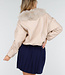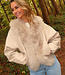 Diese beige Jacke ist aus einem geschmeidigen Lederimitatstoff gefertigt und hat einen großzügigen Kragen aus Kunstfell in passender Farbe. Das Modell hat abgesenkte Schulternähte, eine gerade Passform und zwei Seitentaschen vorne. An beiden Seiten sind verstellbare Kordelzüge eingearbeitet, mit denen das Modell dezent tailliert werden kann.
