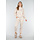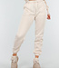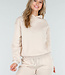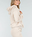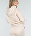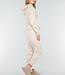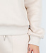 Dieses beige Jogging-Set besteht aus einem Hoodie und einer passenden Hose. Der Hoodie hat eine Kapuze mit Kordelzug und lange Ärmel mit Bündchen. Die Hose hat einen elastischen Bund mit Kordelzug und gerade Beine mit konisch zulaufendem Saum. Das Set ist aus einem weichen, bequemen Stoff gefertigt und fällt geschmeidig um den Körper.
