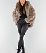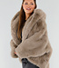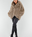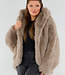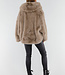 Dieser beigefarbene Kunstpelzmantel hat eine weiche Kunstfellstruktur. Das Modell verfügt über eine großzügige Kapuze und eine Oversize-Passform, die für zusätzlichen Tragekomfort sorgt. Der Mantel reicht bis knapp über die Hüfte und ist für warme Tage vollständig gefüttert.