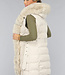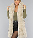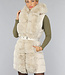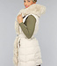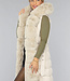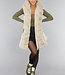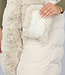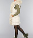 Diese Weste hat lange Ärmel und ist wattiert, was sie wunderbar warm macht. Die Vorderseite hat einen doppelten Reißverschluss mit einem breiten Kunstfellbesatz. Dieser Pelz zieht sich über die gesamte Kapuze. Das Fellimitat am Reißverschluss und an der Kapuze ist durch Knöpfe abnehmbar. Auf der Vorderseite befinden sich zwei Reißverschlusstaschen und drei Gürtelschlaufen, durch die man den mitgelieferten Taillengürtel ziehen kann.