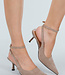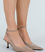 Diese beigen Pumps sind in einem eleganten Wildleder-Look mit einem dezenten Fesselriemchen und einer spitzen Zehenpartie gestaltet. Ideal sowohl für Business-Looks als auch für festliche Anlässe.