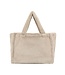 Diese beigefarbene Einkaufstasche ist aus weichem Kunstfell gefertigt, das durch seine angenehme Haptik sofort ins Auge fällt. Die Tasche hat eine geräumige rechteckige Form und ist mit zwei stabilen kurzen Henkeln ausgestattet. Im Inneren befindet sich ein gefüttertes Innenfach mit mehreren Fächern, darunter ein Reißverschlussfach zur sicheren Aufbewahrung kleiner Gegenstände. Der Boden ist flach und breit, sodass die Tasche stabil steht. Dieses Modell kombiniert einen flauschigen Stoff mit praktischen Details und bietet Platz für die täglichen Utensilien.