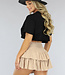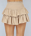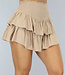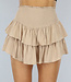 Dieser unglaublich süße Rock ist aus einem sehr feinen Stoff gefertigt. Eigentlich handelt es sich um einen Skort, da er dezent ein Unterteil enthält. Die Taille des Rocks ist gesmokt, so dass er gut sitzt. Am unteren Ende des Rocks befinden sich süße Rüschen/Lagen.