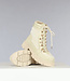 Diese Schnürstiefel sind außen aus Wildleder und Teddybärmaterial gefertigt. Die Innenseite ist aus Kunstleder. Die robuste Sohle ist aus flexiblem Gummi. Die Stiefel haben einen Reißverschluss an der Innenseite und einen Schnürverschluss.