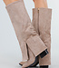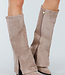 Diese beigen Stiefel in Wildlederoptik haben eine hohe Passform und einen eleganten Schlitz an der Seite. Der stabile Blockabsatz sorgt für Stabilität und einen raffinierten Look. Dank des Reißverschlusses an der Innenseite lassen sie sich leicht anziehen.