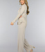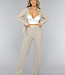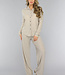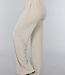 Diese Hose ist aus einem luftigen Stoff gefertigt und mit Glitzersteinen besetzt. Die Hose ist beigefarben und hat weite Beine. Die Hose hat einen elastischen Bund und zwei Seitentaschen.