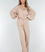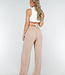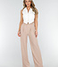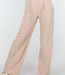 Diese beige Hose ist aus einem geschmeidigen Stoff mit Leinenoptik gefertigt. Das Modell hat einen hohen, elastischen Bund und gerade, locker fallende Hosenbeine. Die Vorderseite ist mit Falten versehen, die für einen leicht eleganten Fall sorgen. Der Stoff fühlt sich luftig an und hat eine matte Oberfläche. Diese Hose kann mit der passenden Bluse zu einem kompletten Set kombiniert werden.