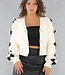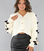 Diese Strickjacke ist gestrickt und daher herrlich warm. Die Strickjacke hat lange Ärmel, einen V-Ausschnitt und süße Schleifendetails an den Ärmeln. Sie ist mit drei Knöpfen versehen.