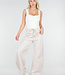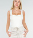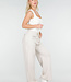Dieser Body ist in Beige gehalten und hat eine figurbetonte Passform. Das Modell ist ärmellos und hat vorne einen quadratischen Ausschnitt. Der Body ist an den Hüften hoch geschnitten. Der untere Teil wird mit einem Hakenverschluss geschlossen. Der Stoff ist glatt und elastisch.