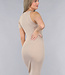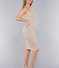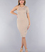 Beigefarbenes Kleid aus geripptem Stoff mit einzelnen Ärmeln