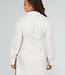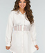 Dieses beigefarbene Hemdkleid kombiniert klassischen Stil mit modernen Details. Das Kleid hat lange Ärmel, einen Kragen und einen durchgehenden Knopfverschluss vorne. Was dieses Kleid einzigartig macht, ist der durchscheinende Netzeinsatz um die Taille, der für einen subtilen verspielten Effekt und eine elegante Taillenbetonung sorgt. Der plissierte Saum verleiht dem Kleid eine leicht ausgestellte Silhouette. Perfekt für einen schicken und zugleich lässigen Look.