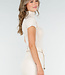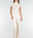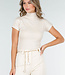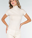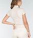 Beigefarbenes Stretch-Top mit Col und kurzen Ärmeln