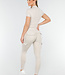 Dieses beigefarbene Sportset kombiniert eine kurzärmelige Jacke mit Reißverschluss mit einer hoch taillierten Leggings, die mit mehreren Cargotaschen und einer auffälligen Schleife auf der Rückseite versehen ist. Das Set ist aus einem weichen Stretch-Stoff gefertigt und bietet eine bequeme Passform. Die abgesteppten Linien und Details verleihen ihm einen coolen Look und betonen Ihre Figur!
