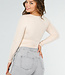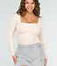 Dieses elegante beigefarbene, langärmelige Oberteil hat einen schmeichelhaften quadratischen Ausschnitt, der für einen modernen und raffinierten Look sorgt. Die figurbetonte Passform betont die Silhouette, während der weiche und dehnbare Stoff für optimalen Komfort sorgt.