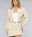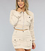 Dieser Zweiteiler besteht aus einem taillierten Bomber und einem kurzen Skort. Der Bomber hat süße Plissee-Details an den Ärmeln und die Ärmelenden haben Verbindungsbündchen. Auf der Brust hat der Bomber zwei Brusttaschen. Er hat einen runden Kragen und einen Reißverschluss. Der Skort hat einen Einsatz am Boden und zwei Cargotaschen. Der elastische Bund ermöglicht ein einfaches An- und Ausziehen.