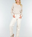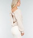 Dieser beige Pullover hat einen stilvollen offenen Rücken mit einer breiten Satinschleife, die oben befestigt wird. Der Pullover ist aus einem weichen, fein gerippten Stoff gestrickt und hat eine lockere Passform mit langen Ärmeln und einem geraden Saum. Die Kombination aus schlichtem Vorderteil und femininem Rückenteil verleiht dem Pullover einen subtilen, schicken Look. Perfekt für lässige und elegante Outfits.