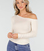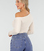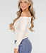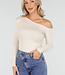 Dieses einseitige Oberteil in Beige ist aus einem weichen Stretchstoff gefertigt. Das Oberteil hat lange Ärmel und eine taillierte Passform.