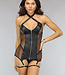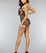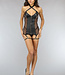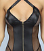 Dieses Dessous-Set ist aus einem anspruchsvollen, durchscheinenden Netzstoff gefertigt. Der Body hat in der Mitte ein Detail in Lederoptik, wo sich auch der Reißverschluss befindet. Im Nacken hat der Body zwei Riemen, die überkreuzt befestigt werden können. Auf der Rückseite hat der Body einen verführerischen Ausschnitt. Das Set wird mit einem passenden String geliefert.