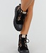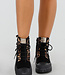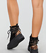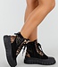 Diese trendigen Biker-Boots vereinen durch den Materialmix aus schwarzem Veloursleder und Leoparden-Print-Details robuste und verspielte Elemente. Die Stiefel haben eine robuste Plateausohle für zusätzlichen Komfort und Halt. Der seitliche Reißverschluss ermöglicht ein einfaches An- und Ausziehen, während der Schnürverschluss den kantigen Look unterstreicht. Perfekt für einen auffälligen Look zu einem Freizeit- oder Streetwear-Outfit.