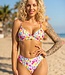 Dieses Bikini-Unterteil hat einen frechen Schnitt und eine hohe Taille. Er hat einen Blumenprint und ist aus einem glatten Stoff gefertigt. Das Unterteil ist hoch geschnitten, so dass man viel von der Hüfte sehen kann und schöne Formen entstehen. Das Unterteil fällt auf halber Höhe über das Gesäß.
