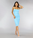 Dieses hübsche Kleid hat einen Bodycon-Schnitt und sitzt daher gut. Das Kleid hat hübsche Plissee-Details an der Seitennaht und am Rücken. Außerdem ist das Kleid sehr dehnbar, sodass man leicht hineinkommt. Das Kleid hat außerdem Spaghetti-Träger. Nicht zuletzt ist das Kleid doppelt gefüttert und scheint daher nicht durch.
