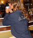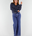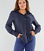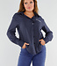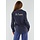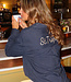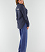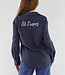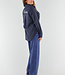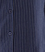 Diese marineblaue Bluse ist mit einem zarten vertikalen Nadelstreifenmuster in Weiß versehen. Auf dem Rücken befindet sich ein gesticktes "St. Tropez"-Detail knapp unterhalb der Schulter, in weißem Kontrastgarn. Die Bluse hat einen Kragen, einen Knopfverschluss vorne und lange Ärmel mit Knopfmanschetten. Das Unterteil ist abgerundet und fällt über die Hüfte. Der Stoff hat ein leicht glänzendes Finish und einen weichen Griff.