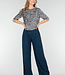 Diese blaugrüne Hose ist aus einem geschmeidigen Stoff mit Glitzerfinish gefertigt. Das Modell hat einen hohen, elastischen Bund und gerade, locker fallende Hosenbeine. Die Vorderseite ist mit Falten für einen schicken Fall und zwei praktischen Seitentaschen versehen. Der Stoff hat eine weiche Struktur mit Stretchanteil.